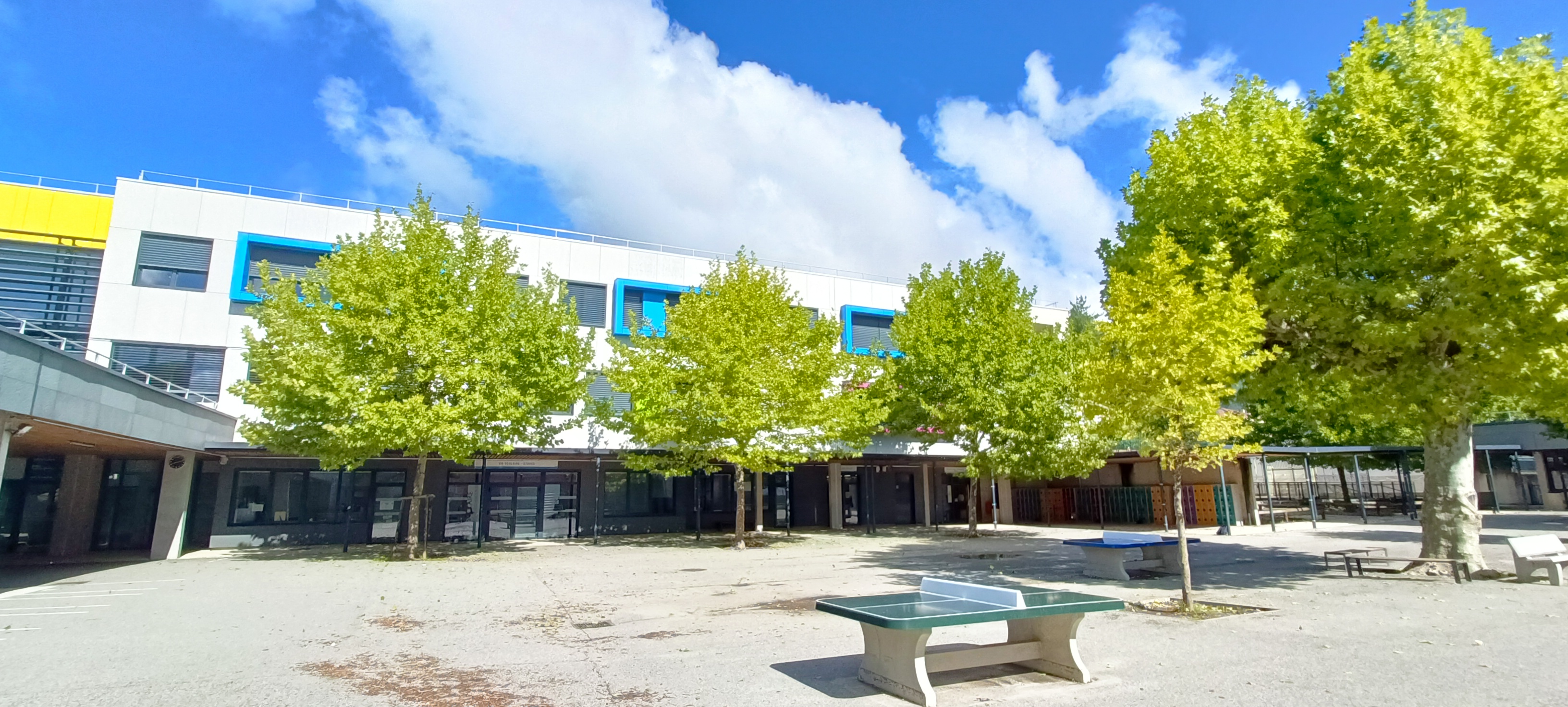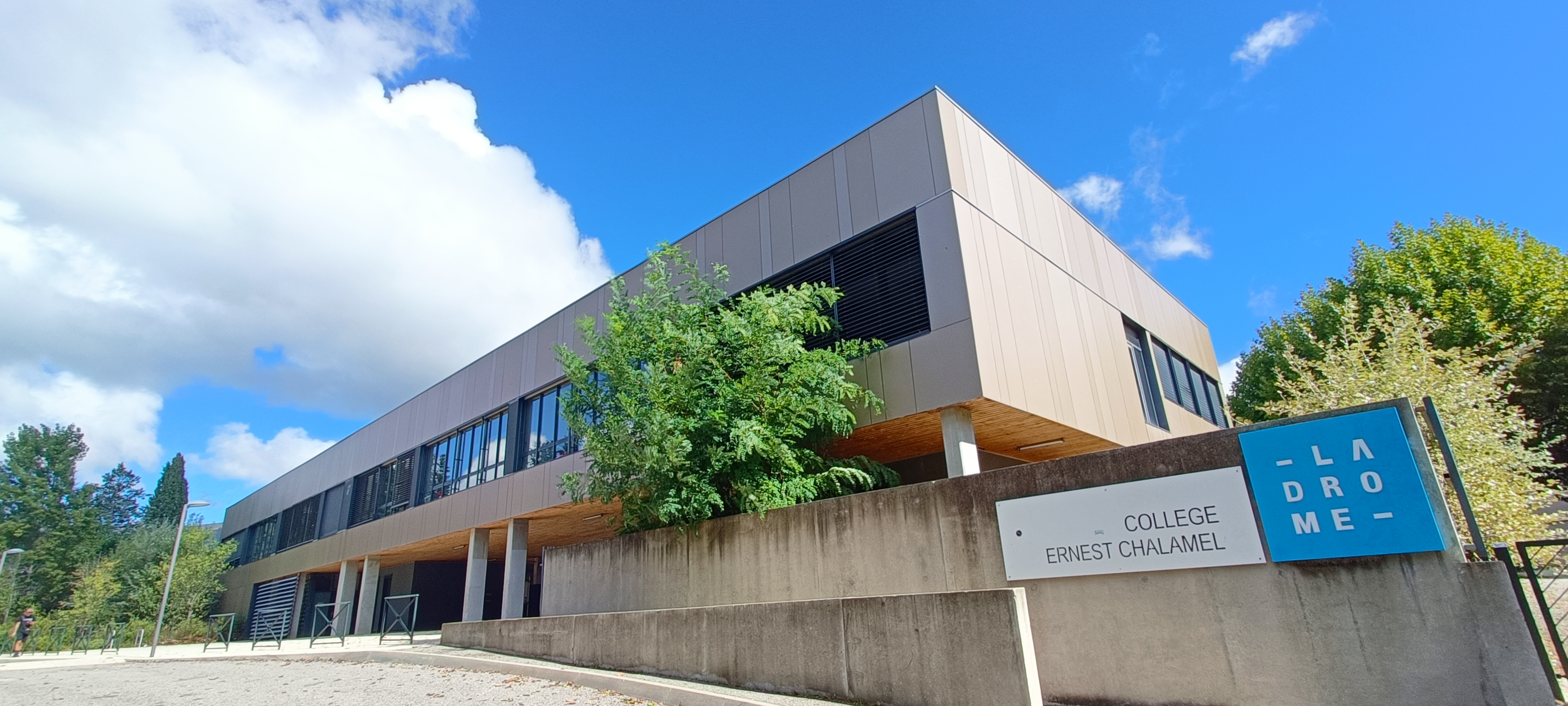 Le collège Ernest Chalamel est situé à Dieulefit. Le collège L'entrée La cour et les bâtiments Vue de l'entrée depuis la cour Entrée de la Vie Scolaire La cour de récréation Le city stade du collège Vue de la cour et des collines depuis un couloir au premier étage